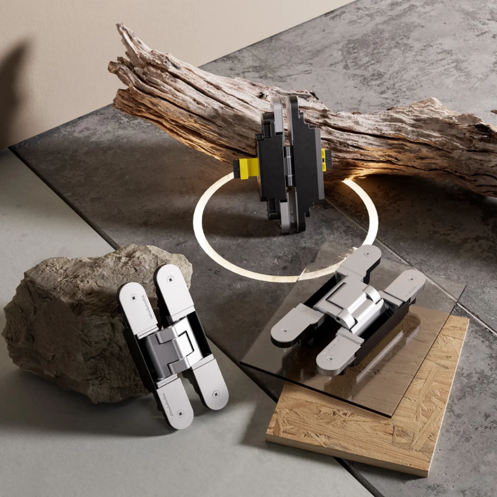 Concealed hinge systems engineered for timber, glass, aluminum, and steel doors. German craftsmanship time tested.